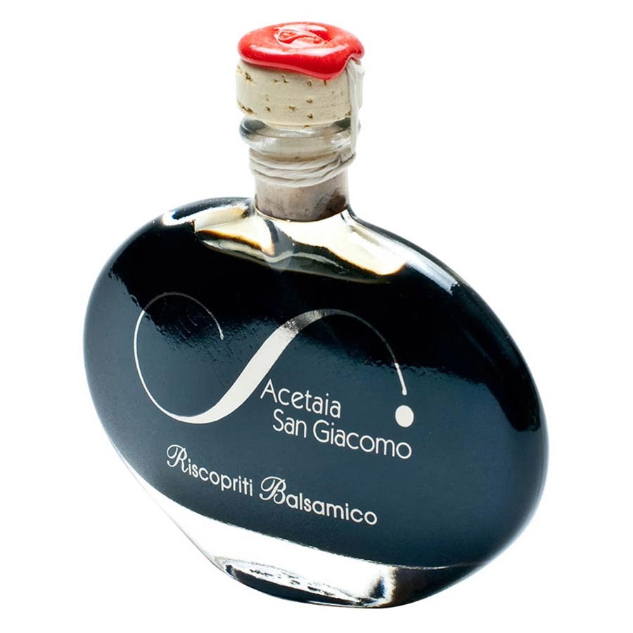 Sourced from San Giacomo’s own organic Trebbiano & Lambrusco vines, Condimento Balsamico is a reduced grape must that has been aged in 7 varieties of wood barrels for a beautiful & complex flavor. Forget everything you know about so called ‘aged balsamic.’ This is the real deal!