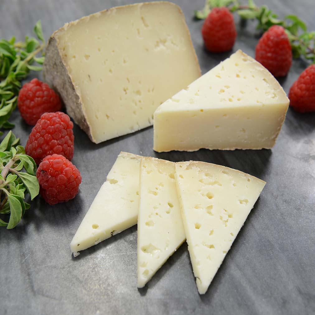 St. Germain is a tomme-style cheese inspired by the cheeses of the Pyrenees. It's texture ranges from semi-hard to hard, with a dense and toothsome mouthfeel. The flavor profile is herbaceous with notes of lime and coconut, and a subtle minerality.