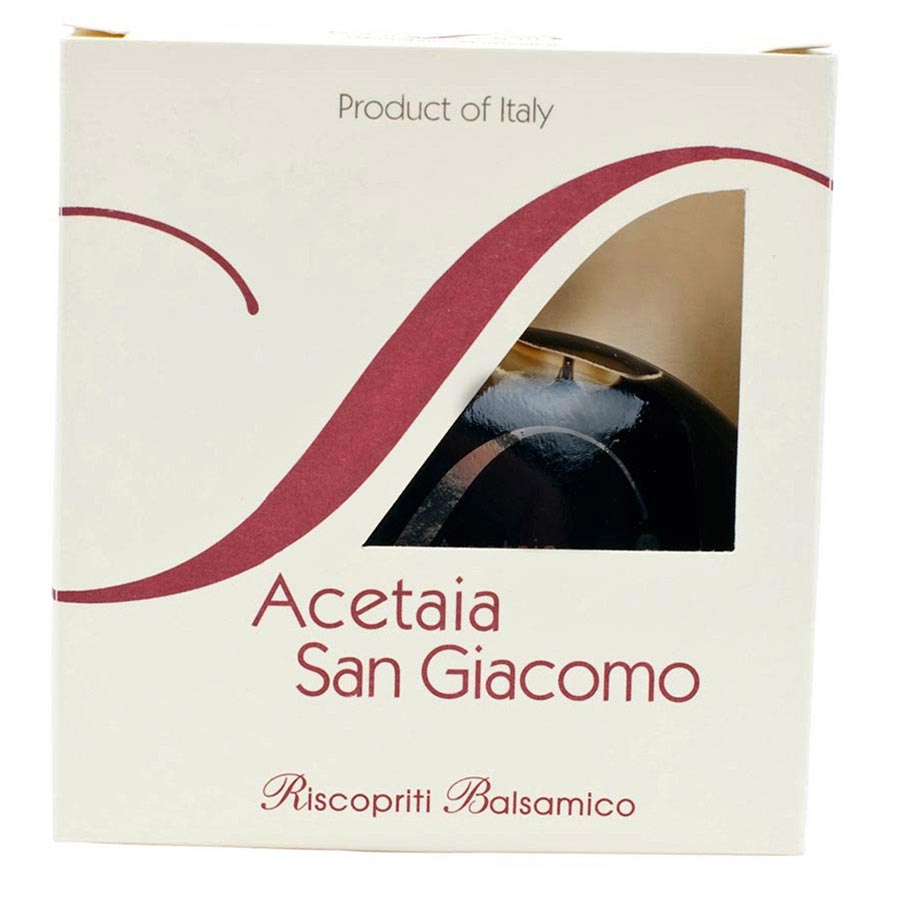 Sourced from San Giacomo’s own organic Trebbiano & Lambrusco vines, Condimento Balsamico is a reduced grape must that has been aged in 7 varieties of wood barrels for a beautiful & complex flavor. Forget everything you know about so called ‘aged balsamic.’ This is the real deal!