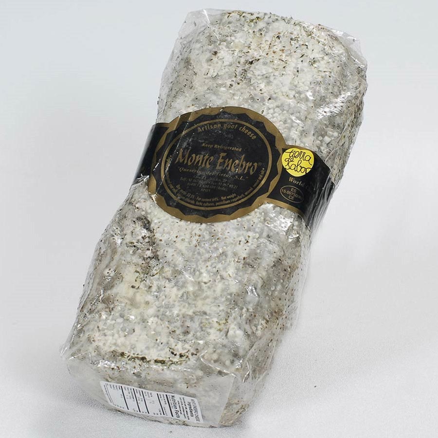 Monte Enebro is handmade in Avila, Spain, by legendary cheesemaker Rafael Baez and his daughter Paloma. The Baezs make their complex goat's milk cheese from pasteurized milk and innoculate the logs with the same mold used to make Roquefort, adding to Monte Enebro's complexity and distinctive appearance. Aged 30-45 days in the Sierra del Gredos mountains, Monte Enebro is creamy, lemony and slightly acidic; as it ages, the texture becomes denser and the flavor acquires more intense, pungent finish.