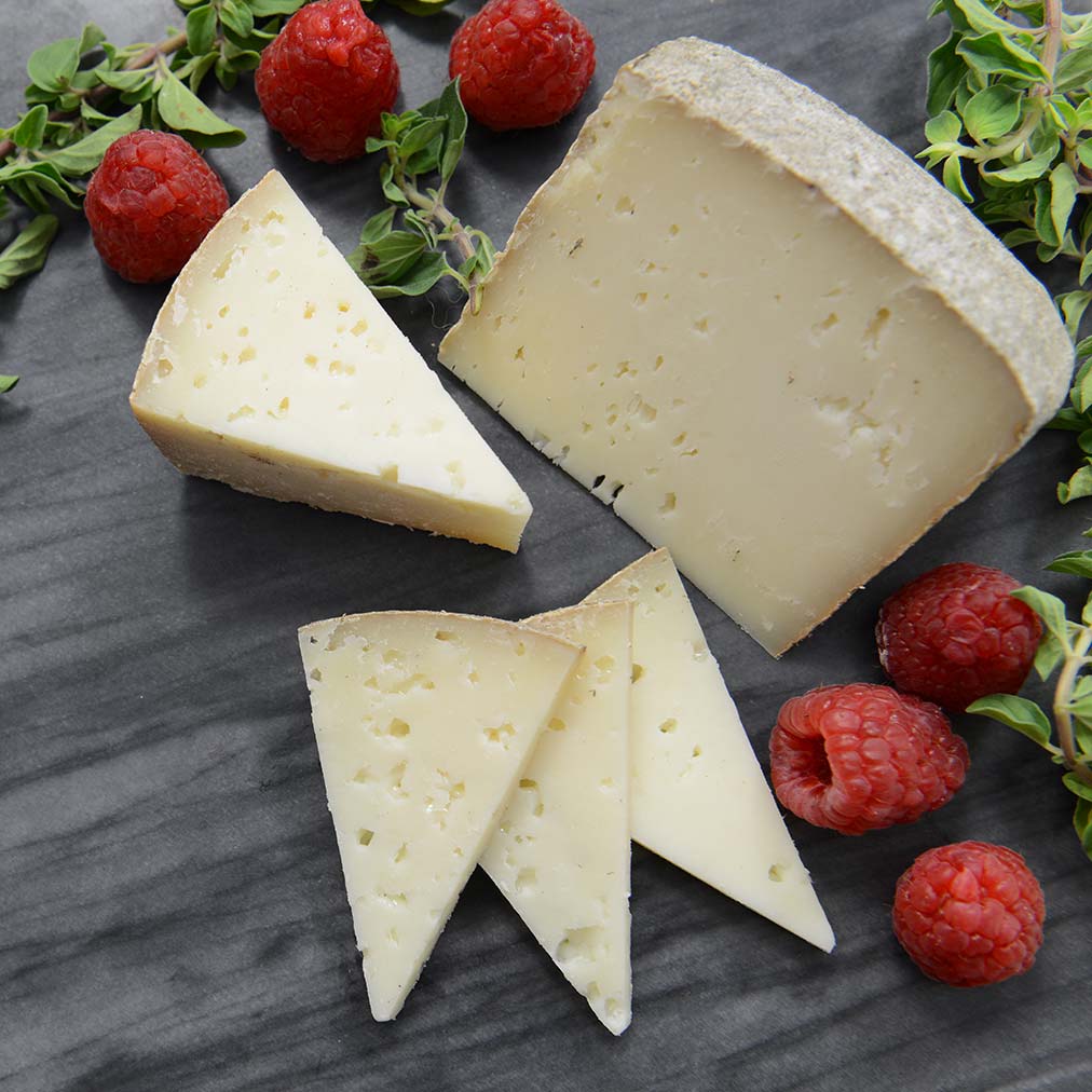 St. Germain is a tomme-style cheese inspired by the cheeses of the Pyrenees. It's texture ranges from semi-hard to hard, with a dense and toothsome mouthfeel. The flavor profile is herbaceous with notes of lime and coconut, and a subtle minerality.